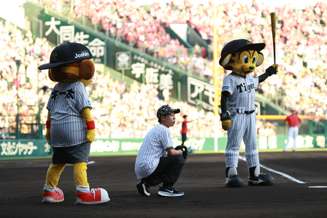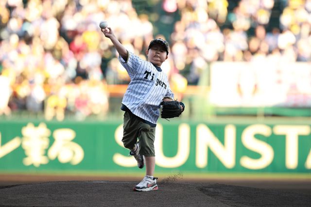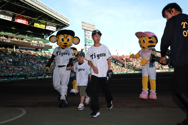 9月6日(土)に阪神甲子園球場にて開催されました、対広島カープ戦の試合前に、小児がんを経験したお子さま2名を投手・捕手役として、ファーストピッチセレモニーを実施しました。