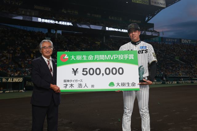 - 才木浩人選手「8月度大樹生命月間MVP賞」表彰式を実施