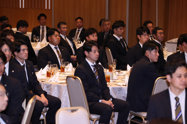 27日(木)、秦雅夫オーナー、粟井一夫社長、藤川球児監督をはじめ、コーチ、選手、職員が一同に集まり「2025年度阪神タイガース納会」を開催いたしました。