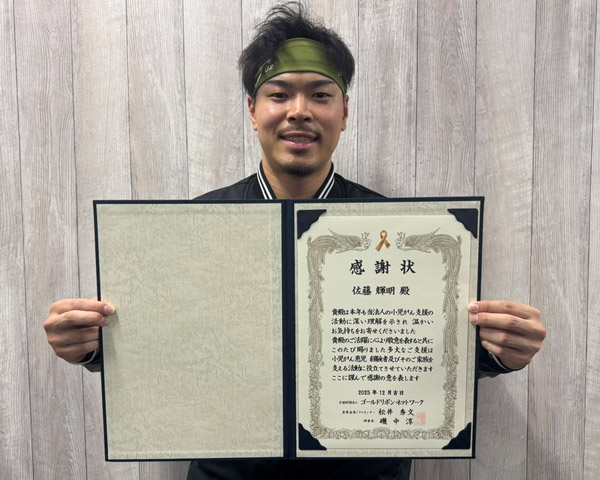 …2008年の設立。小児がんの子どもたちが安心して笑顔で生活できる社会を目指し、支援事業や啓発活動を行っている公益財団法人で、佐藤選手は2023年から同団体への寄付活動を行っています。