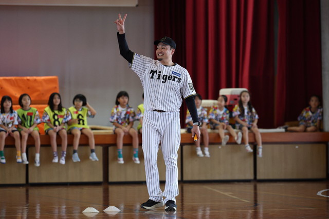 阪神タイガースではベースボールスクール以外に、アンバサダーやOB、タイガースアカデミーコーチを派遣し、小学校の先生に代わって授業を行い、野球に触れ合う機会をもってもらう活動をしております。