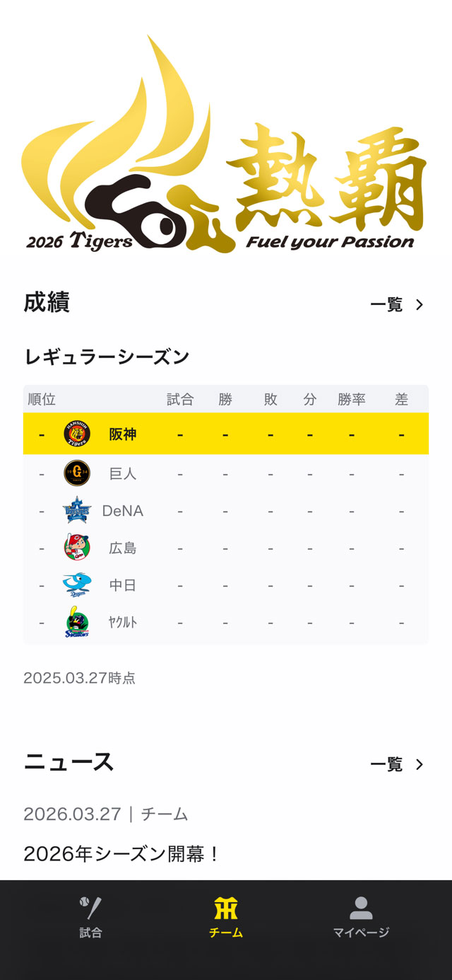 成績・ニュース・ヒッティングマーチ チームの今をアプリでチェック